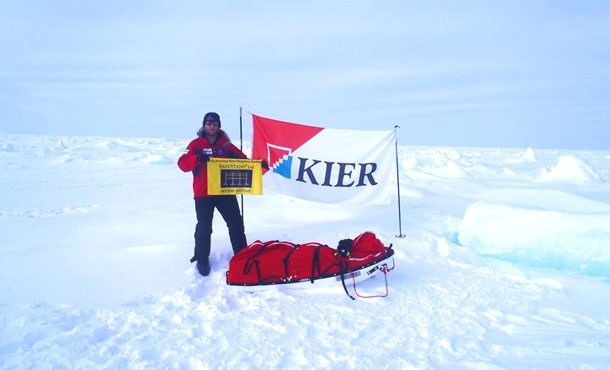 23/09/2010 – Mark Starling, Safety, Health & Environmental Manager, Kier Partnership Homes is starting on an adventure to the 1996 Position of the Magnetic North Pole covering a distance of 360 nautical miles. He set out from Resolute Bay in the high Canadian Arctic heading to the Magnetic North Pole. Mark placed the SafeStand® flag in the ice in appreciation of the SafeStand® sponsorship that he received.
