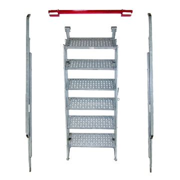 SafeStand® has specifically been designed to be simple to erect and move about thereby reducing the possibility of errors which can lead to costly and sometimes devastating results. To maintain the simplicity of the system, every effort has been made to keep the number of components to a minimum. The basic SafeStand® setup consists of only eight components; however added features such as the SafeStand® Staircase and the SafeStand® Gate do increase this number. Below is a photo depicting all of the features of the SafeStand® Access System. Just click on a number to get specific component details.